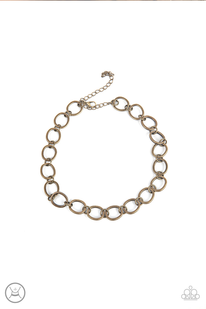 Brushed in an antiqued finish, imperfectly shaped circles link together for a gritty industrial statement. Features an adjustable clasp closure.