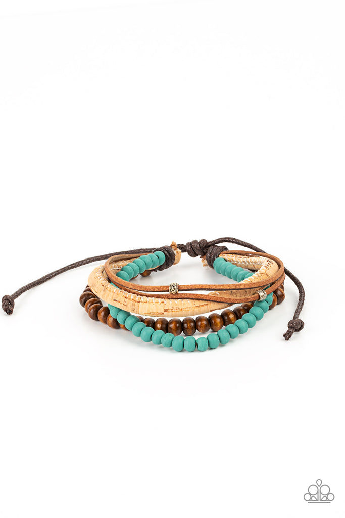 Featuring a strand of turquoise wooden beads, a collection of earthy strands of cork, leather, and wood, comes together for a simple handmade feel as it stacks up the wrist. Features an adjustable sliding knot closure.